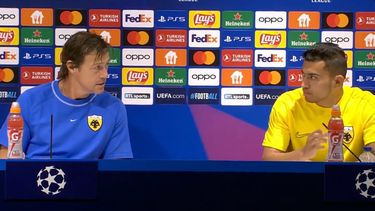 Entrenador y 'play-maker', durante una rueda de prensa previa a una cita europea.ED