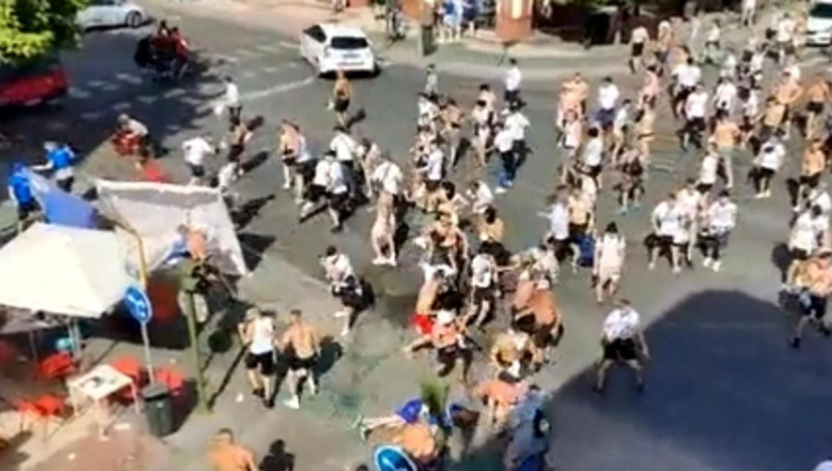 Incidentes entre aficionados en Sevilla el pasado año.ED