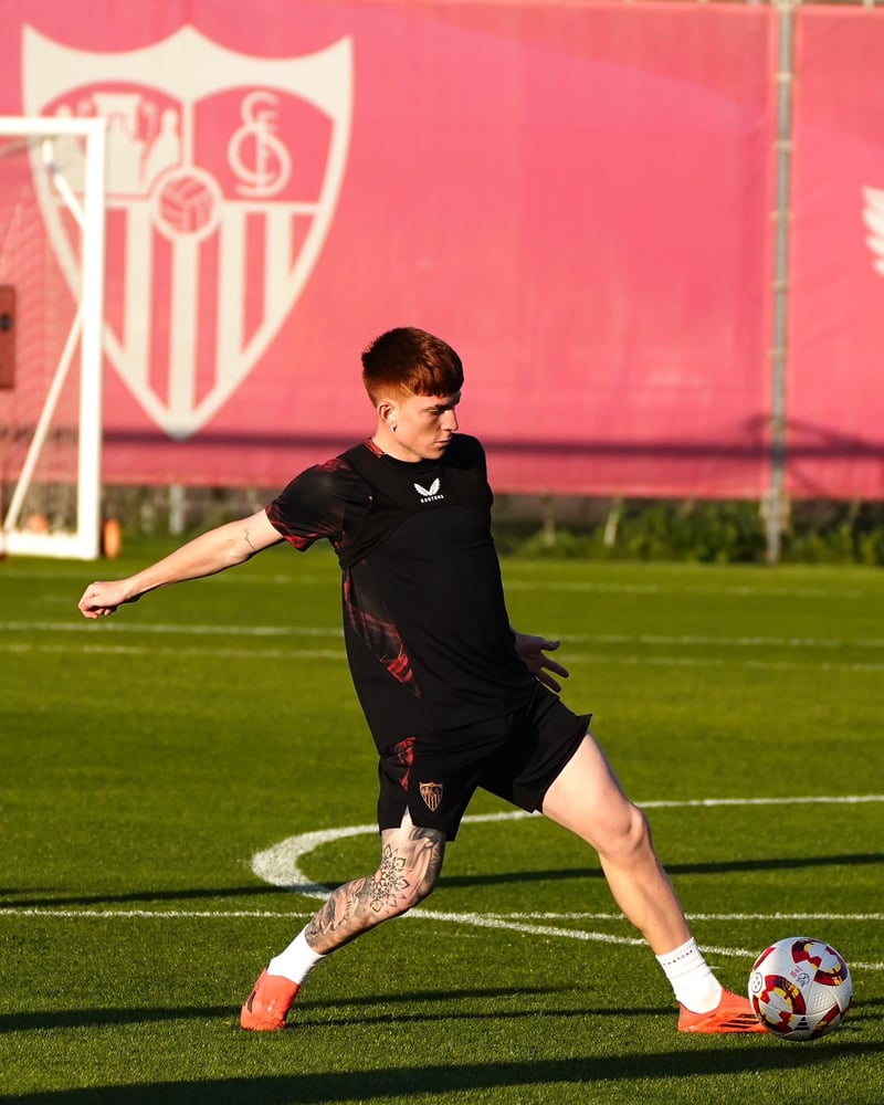 El lateral zurdo sigue ejercitándose en la capital hispalense a la espera de que fragüe su fichaje por el Oporto o alguna de las otras vías que se le han presentado para acabar la temporada