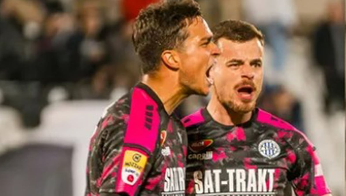 El medio serbio celebra un tanto con su equipo.@fktsc