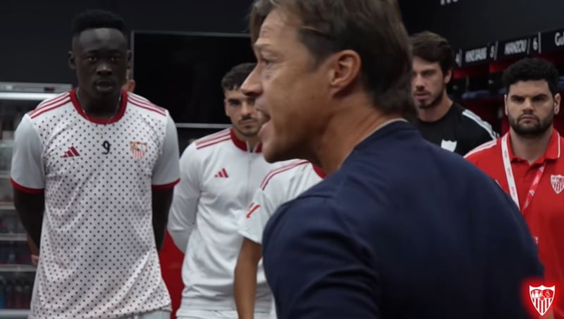 Como se puede ver en el vídeo compartido por el Sevilla FC, el preámbulo de la última charla antes de saltar al campo corre a mano del preparador físico Guido Bonini. Almeyda entró en el vestuario justo al final para lanzar un mensaje conciso y directo: "Piensen que somos unos elegidos por estar en este momento acá. Ustedes tienen que disfrutar el partido, pero con convicciones. Hay datos de que este equipo no gana acá hace 10 años. ¡10 años! Vamos, más motivación que esa ustedes no pueden tener. 10 años que no se gana acá. Entonces, ustedes lo pueden romper".