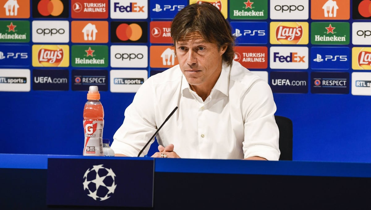 Matías Almeyda en una rueda de prensa de Champions con el AEK.Cordon Press