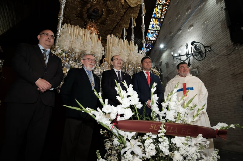 Y si concentrada será la actividad de los profesionales durante la Semana Grande de Sevilla, igual de intensas serán las mañanas para el consejo de administración, que realizará sus tradicionales cuatro ofrendas florales a las cofradías vecinas del Distrito Nervión-San Pablo, además de tener un detalle (una corona) con otras tres en las que no habrá representación directiva: las de vísperas de Pino Montano (que procesionó este Viernes de Dolores y de donde es el sacerdote del club, el Padre Indalecio) y La Milagrosa (por la cercanía con Piscinas Sevilla, donde se vivirá un día grande este Sábado de Pasión), y la penitencial (desde 2006, que tomó El Juncal como sede canónica un año más tarde e incorporada ya en carrera oficial desde 2010) Hermandad del Sol, afincada en El Plantinar, igualmente próximo al Ramón Sánchez-Pizjuán, aunque pertenezca al Distrito Sur.