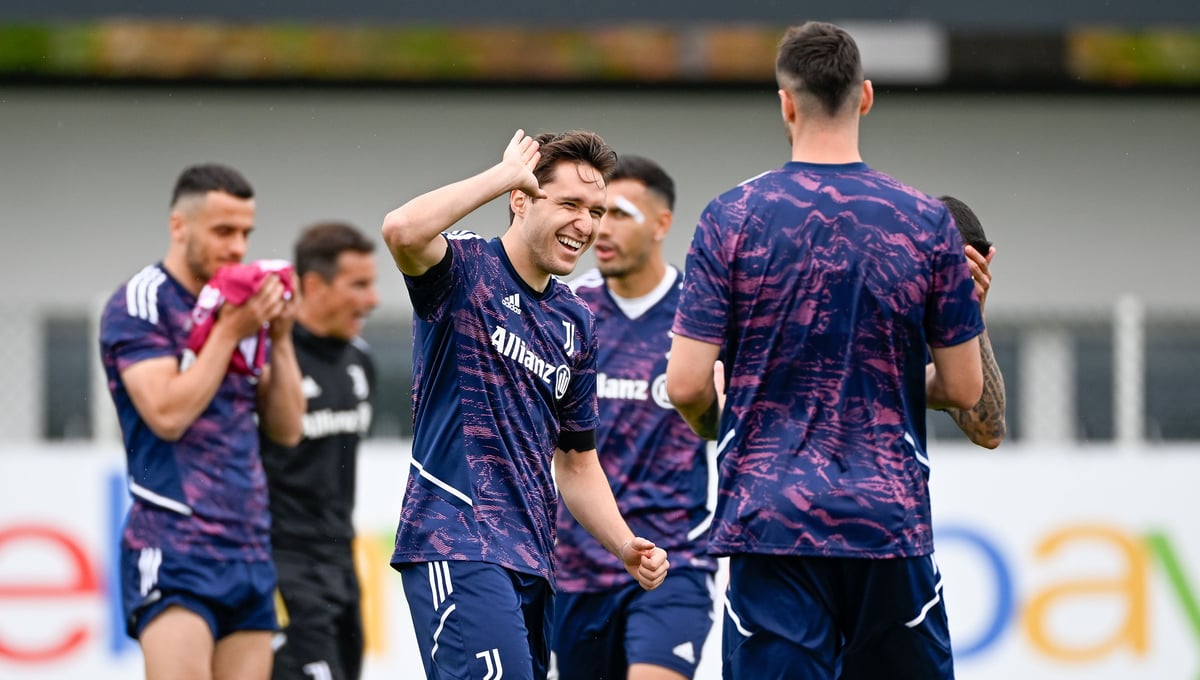 Sonrisas en el último entrenamiento de los 'bianconeri', en Turín por la mañana, por lo que no pisaron el escenario del encuentro.@juventusfc