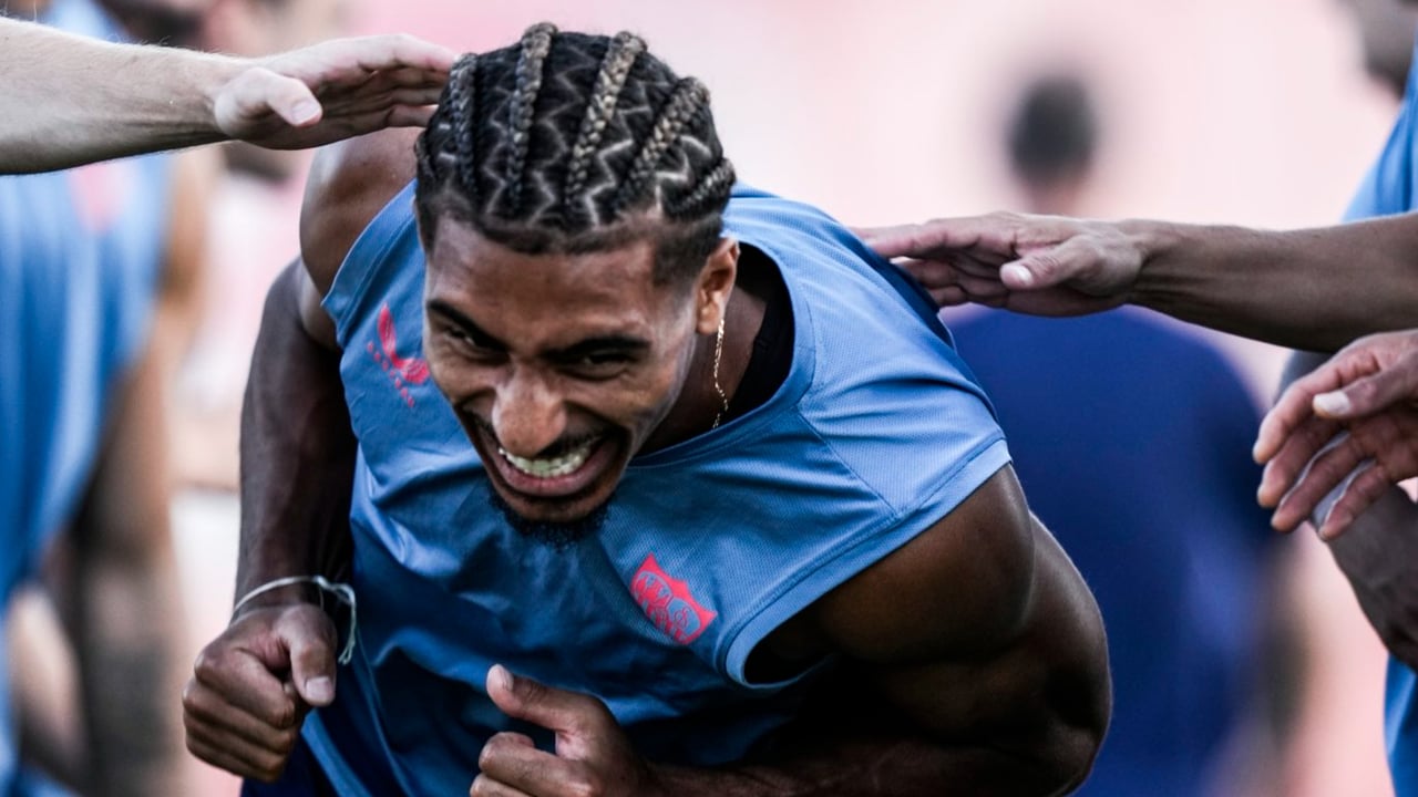 El zaguero ex del Rennes, felicitado por sus compañeros tras colgarse la medalla de Plata en los Juegos Olímpicos de París 2024.SFC