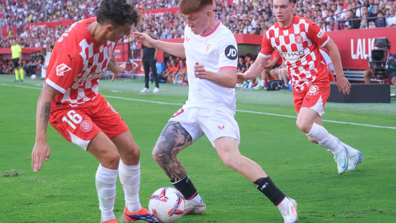 Valentín Barco se estrenó con nota con la casaca del Sevilla FC. En la derrota de su equipo ante el Girona (0-2), marcada por la falta de contundencia en ambas áreas, el lateral rojiblanco fue una de las grandes sensaciones del choque. Verlo jugar fue divertido en un debut en el que demostró una personalidad arrolladora desde los primeros compases del encuentro, en un choque donde el único lunar fue su despiste en el gol de Iván Martín.