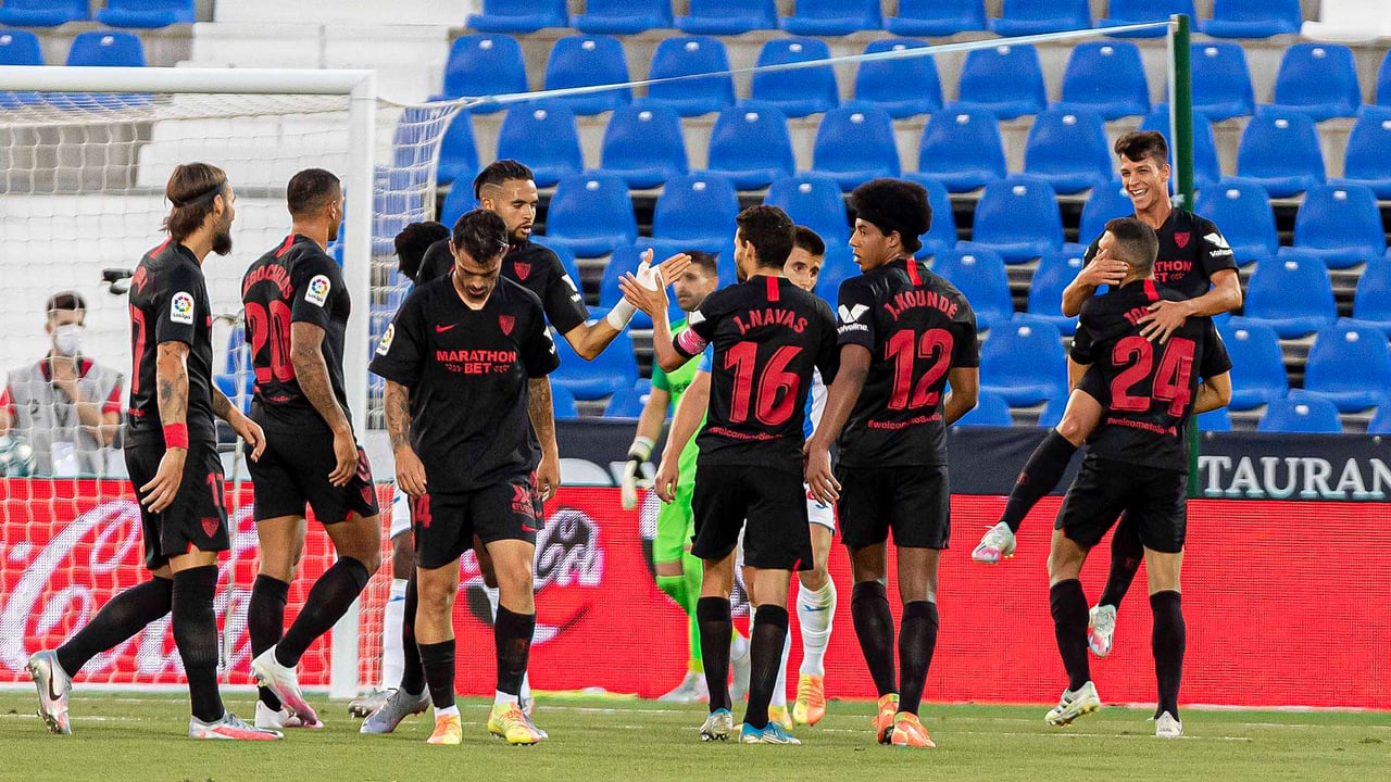 Como se ha apuntado, el Sevilla FC volverá a jugar en Leganés un partido oficial de LaLiga cincuenta y dos meses después de la goleada en la 20/21 por 0-3, con doblete de Óliver Torres y broche de un Munir El Haddadi que, curiosamente, ahora defiende los colores blanquiazules. Poco después, eso sí, los nervionenses quedaron emparejados con los madrileños en la tercera ronda (a partido único, disputado en Butarque) de la Copa del Rey, un choque que se tuvo que resolver en la prórroga, tras las tablas sin goles del tiempo reglamentario. Un tanto de Lucas Ocampos en el minuto 96 bastó a los de Julen Lopetegui aquel 16 de enero de 2021. Los blanquirrojos eliminarían luego en octavos de final al Valencia CF (3-0) y en cuartos a la UD Almería (0-1), cayendo en semifinales ante el FC Barcelona, a la postre campeón, aunque los culés sufrieron para remontar el 2-0 de la ida, lográndolo en el tiempo extra (3-0).