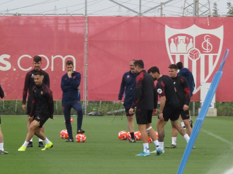 Bajo un manto grisáceo de lluvia despertó la ciudad deportiva José Ramón Cisneros Palacios para dificultar aún más la tarea de la plantilla sevillista. Fiel reflejo de la tormenta por la que atraviesan las mentes blanquirrojas, a sabiendas de que el choque de este fin de semana puede significar la calma. En dinámica con el grupo se ejercitó Djibril Sow. El suizo superó sus molestias en el tendón de Aquiles y se reintegra en la recta final de la temporada para presentar su candidatura de cara al choque de este domingo.