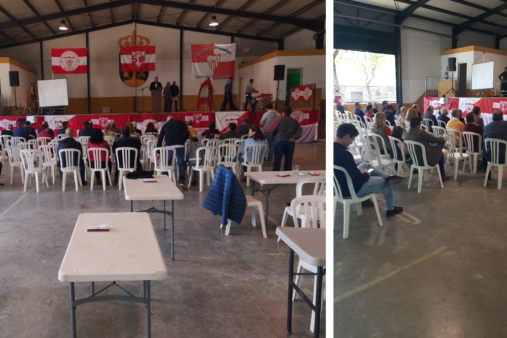 Con la presentación a cargo del periodista José Manuel García, el mandamás utrerano estuvo acompañado por el vicepresidente Gabriel Ramos y el consejero Luis Castro, además de por el alcalde bormujero, Francisco Miguel Molina, y los jugadores veteranos Rodri y Enrique Lora. Asimismo, el socio número 61 de la entidad, Mamerto Ramírez, fundador de la peña, recordó que Busto, Araujo y Liz estuvieron en la inauguración de la propia asociación en 1972. "No es fácil llegar a los 50 años. Tiene especial valor fundar una peña en momentos duros, como en los primeros años de la década de los 70, años convulsos en la historia de nuestro club. Felicitar igualmente a la Peña y a las peñas del Aljarafe por ese homenaje póstumo a un sevillista de los pies a la cabeza como era José María Fidalgo. Que Dios lo tenga en su gloria", arranca José Castro su discurso, que, según filtraron los asistentes, habló ante un auditorio casi vacío, 'cuatro gatos', como se dice vulgarmente, en contra de un Del Nido que reunió el sábado en esa misma caseta municipal a 180 comensales, unas 250 personas en total.
