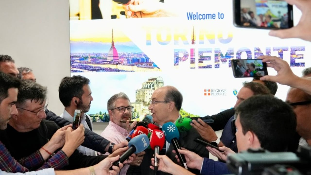 El rector utrerano atiende a los medios de comunicación a su llegada el miércoles a Turín.SFC