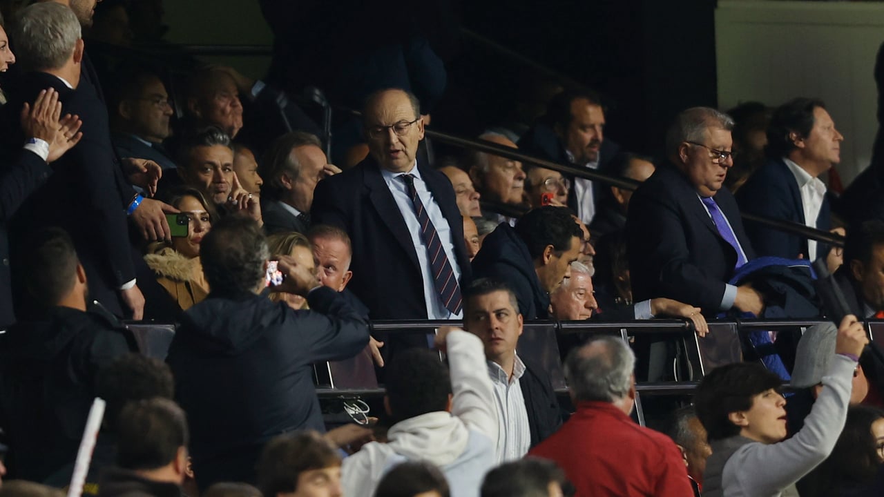 El máximo rector sevillista, en el palco durante el encuentro de Champions de este miércoles.UES