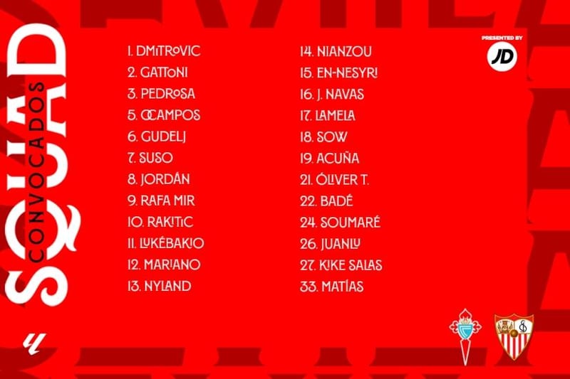Celta - Sevilla: Lista de 24 para viajar a Vigo, con las dos bajas previstas y otra que se está convirtiendo en habitual