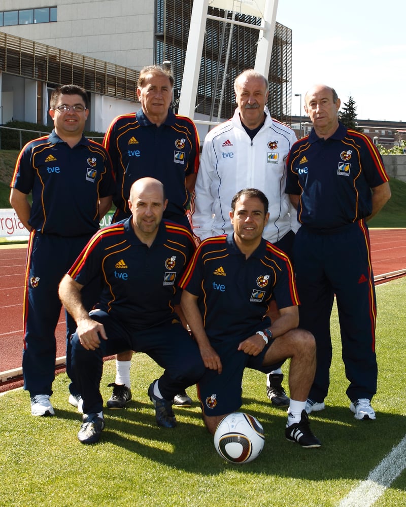 - La verdad es que hasta entonces yo me dedicaba al fútbol amateur. Yo jugué al fútbol, pero no de manera profesional, pero hubo una coincidencia que siempre he comentado y que yo creo que es la que marca un poco un antes y un después en mi carrera dentro del mundo del fútbol, que es cuando hacemos el curso nacional de entrenadores, el nivel 3 de hoy, en Sevilla. Coincido allí con mucha gente vinculada en ese momento al Sevilla, algunos todavía como Pablo Blanco. Pero principalmente la figura de Manolo Jiménez es un punto de inflexión en mi carrera. Manolo y yo hacemos un vínculo y tenemos mucho feeling en el curso de entrenadores. Él ese año firma en el Sevilla, que es el año de los cambios, que llega Monchi y pasa de ser delegado a director deportivo. Jiménez pasa a ser entrenador del Sevilla Atlético y es él el que le habla a Monchi. Yo venía de entrenar al Rota en Cádiz, entonces yo le pasaba informes de equipos de Tercera división de la provincia de Cádiz en aquel momento, como podían ser Portuense, Sanluqueño, Algeciras… A él le gustaban mucho mis informes y es él el que pone mi nombre encima de la mesa y le dice a Monchi que estaría bien que se tomase un café conmigo. Yo a Monchi no lo conocía absolutamente de nada. Y es Manolo el que le habla de mi existencia. A partir de ese café, pues la verdad es que intenté no perder la oportunidad y aquí seguimos con el paso del tiempo. Él me dio la posibilidad de probarme durante seis meses, desde ese diciembre del 2010 hasta junio. Traté de dar mi mejor versión, dentro de que entonces era una persona que estaba empezando en todo esto, y a partir de ahí me enganché y afortunadamente nunca paré de trabajar.