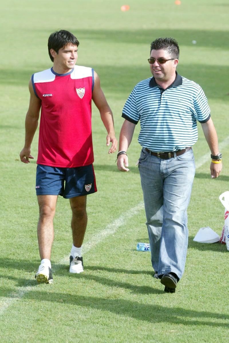 - A partir de esos primeros seis meses yo hacía informes para el Sevilla Atlético principalmente, pues el primer equipo lo tocaba muy poquito. En esa época también el Sevilla económicamente estaba bastante mal y no había la posibilidad de viajar, ni había una infraestructura como la que luego se fue montando con el paso del tiempo. Fui avanzando y después de esos seis meses, cuando me renuevan, me suben ya a la Dirección Deportiva del primer equipo. Me acuerdo que fui a ver un primer partido a la Rosaleda, un Málaga-Oviedo para ver a un lateral izquierdo. Fui haciendo informes y ya luego me dieron la posibilidad de empezar a viajar cuando el club se lo puede permitir. Empezamos un poquito con Portugal, ver la Segunda de Francia. Cuando empezamos a dar el salto ya a Sudamérica, que el club se podía permitir el traslado y el costear los viajes de los técnicos, pues ya ahí más o menos empiezo a tener un contacto con el fútbol sudamericano, del que desde el principio me enamoré por un montón de circunstancias. Ahí tengo la posibilidad de ver a Dani Alves en el Sudamericano Sub 20 del 2003 en Uruguay. Tenía ya cierta información de él porque había venido al anterior Cotif de Valencia y lo había visto, aunque él venía siendo un jugador dos años menores que el resto de los componentes de aquella Selección. Y bueno, durante el Sudamericano traté de hacer un trabajo muy exhaustivo. No dedicarme solamente a ver los partidos de las selecciones, sino cuando yo viajo ya tenía información de Dani, pedí permiso para ver entrenamientos. Un día incluso para poder cenar con él en un día de descanso de la Selección, en presencia de su representante y un miembro de la CBF, de la Confederación Brasileña de Fútbol. Y claro, intenté avanzar mucho porque en ese momento el Sevilla llegaba cinco minutos antes, evidentemente, o era un objetivo imposible porque había otros clubes. Posteriormente supimos, principalmente, el Real Madrid y la Juventus, que lo estaban siguiendo muy de cerca. Pero ellos necesitaban, por el poderío que tenían, un poquito más de tiempo, de información y de tener las cosas seguras para hacer una apuesta. Nosotros nos tuvimos que meter rápidamente a hacer una cesión con opción de compra a año y medio vista que posteriormente todo salió bien, gracias a Dios. Pero sí fue ese momento, esas circunstancias, las que me hicieron tomar esa decisión.