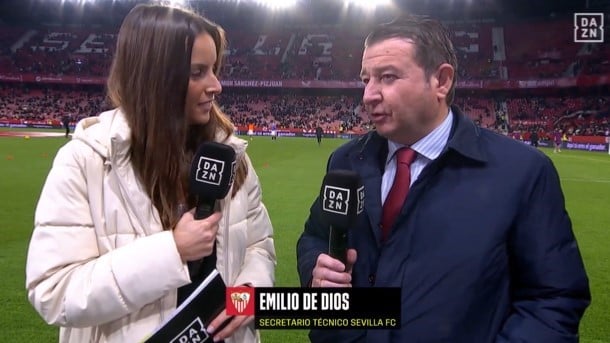 El secretario técnico del Sevilla, Emilio de Dios, atendió a la televisión antes del encuentro frente al Alavés y reconoció que el club está abierto a las oportunidades que puedan mejorar el plantel en este mes de enero