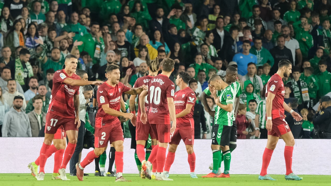 El Comité de Competición ha resuelta sin crudeza las expulsiones del último derbi hispalense, tres de jugadores de campo y una de un cuerpo técnico, hasta el punto de considerar que solamente merecían un partido de exclusión el entradón de Gonzalo Montiel a la rodilla de Álex Moreno, el codazo de Nabil Fekir a la cara del Papu Gómez y el pisotón de Borja Iglesias en el gemelo de Joan Jordán. Eso sí, añade dos encuentros más por menosprecio o desconsideración hacia Sánchez Martínez en el caso del lateral derecho argentino, que suma tres fuera en total, y el del entrenador de porteros heliopolitano, Toni Doblas. En el caso del internacional francés, no tuvieron éxito las alegaciones al acta presentadas en tiempo y forma por los servicios jurídicos del club verdiblanco.