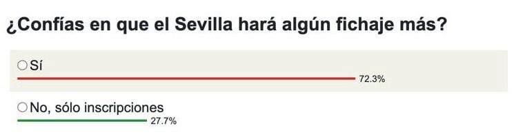 Con esta problemática encima de la mesa, los días siguen avanzando y en el Sevilla, en el caso de que inscriba a Vargas por Badé, quedan los tres fichajes de la temporada sin inscribir. Suazo, Alfon y Vlachodimos siguen esperando que la situación se arregle a menos de 10 días para el final del mercado de fichajes. Por eso, ante las dificultades que está teniendo sólo para inscribir a las nuevas incorporaciones, en Estadio Deportivo hemos querido plantear a la afición la pregunta sobre si confía en que haya más fichajes o cree que sólo dará para inscribir a los actuales. La respuesta de la hinchada nervionense ha sido tajante. El 72,3% de los votos tiene plena confianza en que Antonio Cordón conseguirá nuevos fichajes antes del cierre. El 27,3% restante cree que sólo se podrá inscribir a los actuales sin nuevas llegadas.