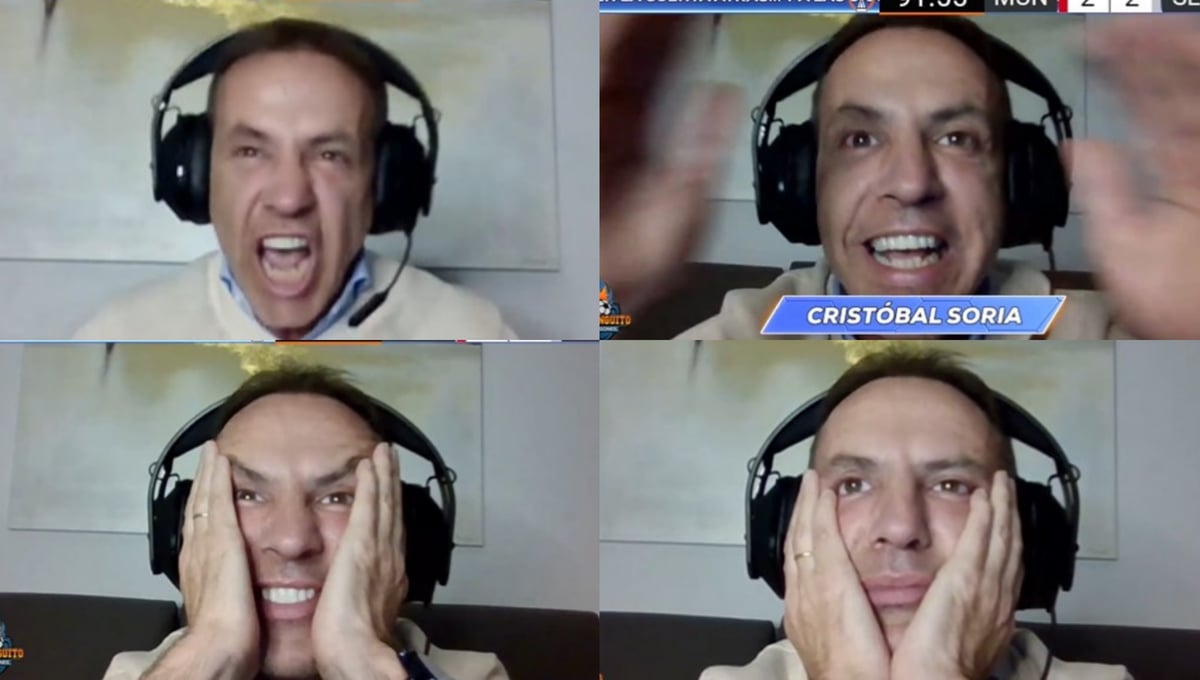 Entre ellos el exdelegado del Sevilla FC y colaborador de 'El Chiringuito' Cristóbal Soria, que vivió el partido como otro sevillista más y se pudo ver online a través de plataforma de Twitch de dicho programa. Soria sufría y confiaba en un golpe de suerte que pudiera llevar la eliminatoria más ajustada al partido de vuelta en el Ramón Sánchez-Pizjuán y ese llegó en el minuto 84. Con el gol de Malacia en propia puerta tras el pase atrás de Jesús Navas, Soria estalló soltando los cascos y repitiendo a viva voz varias veces: "Gol, gol, gol, gol...".