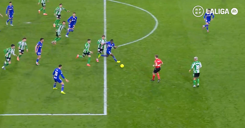 Tocaba baño y masaje a los responsables del Real Betis-Getafe CF, aunque mejor no entrar en el inadmisible fuera de juego previo del 'Cucho' Hernández para anular varios segundos después el segundo gol de Pablo Fornals y quinto del conjunto heliopolitano, culpa única seguramente del sistema semiautomático. No se había señalado el antes conocido como 'orsay' posicional a Marc Roca en el 4-0 del colombiano, aunque se miró y remiró si el de Pereira estaba más adelantado cuando disparó en primer instancia Aitor Ruibal desde la frontal y cuando la pifió delante de él el catalán, si bien, por fortuna para los intereses verdiblancos, el atacante se encontraba siempre por detrás de, al menos, dos defensores y/o del balón. Esto es lo que argumenta la asesora del Comité Técnico de Árbitros Marta Frías Acedo: