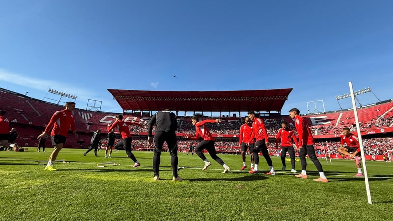 A poco más de 24 horas para que arranque el derbi, el Ramón Sánchez-Pizjuán se preparó para la gran cita con una fiesta en la mañana de hoy con un entrenamiento multitudinario para caldear los ánimos y transmitir al equipo energía, ilusión y un mensaje claro de apoyo para llevarlos en volandas contra el Betis.