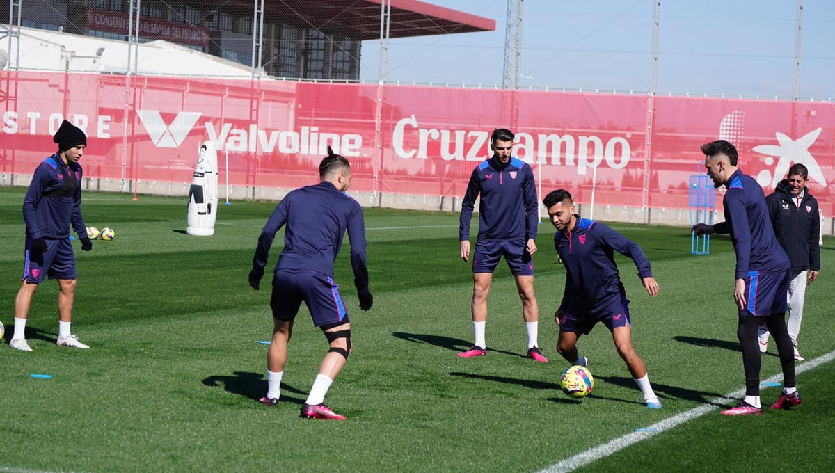 Así, como es habitual en el entrenamiento pospartido, los titulares en el choque de ayer ante Osasuna se han quedado trabajando en el gimnasio haciendo trabajo de recuperación, mientras que el resto de la plantilla sí que ha trabajado con el balón, bajo la atenta mirada de Monchi.