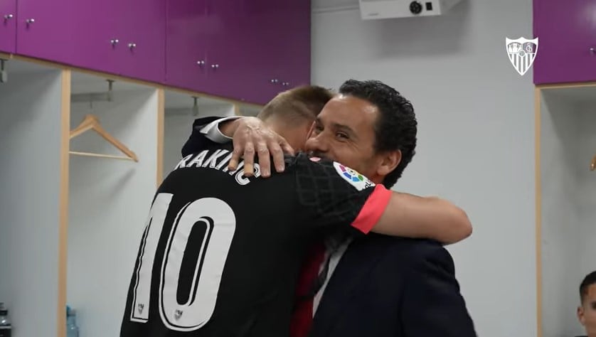 La liberación llegó sobre todo ya con el último gol, el del Tecatito Corona, en el día de su vuelta a los terrenos después de ocho meses de una larga recuperación de su grave lesión de tobillo. No podía ocultar su sonrisa Corona a la llegada a los vestuarios, donde fue felicitado por todos y cada uno de sus compañeros, y alguno como Rakitic o Acuña no dudó tampoco en gastarle alguna broma... Todo contrastaba con la serenidad de un Youssef En-Nesyri que no tuvo que jugar ningún sólo minuto y que entraba al vestuario con las manos dentro del anorak y silbando un conocido cántico de los Biris con el "aquí está la mejor banda, aquí estamos otra vez...", con la mente puesta ya totalmente en el partido de este jueves.