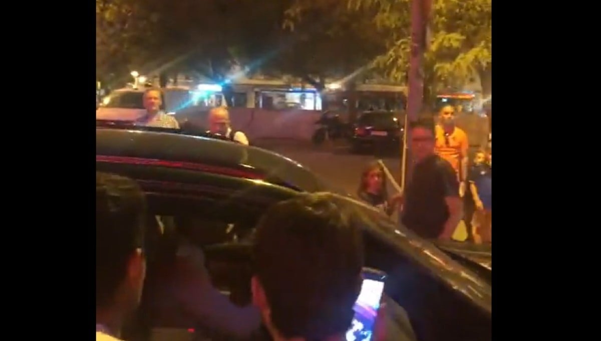 "Da la cara" le dicen en este video grabado por uno de ellos y que ha subido a las redes. Monchi llega a pararse, para finalmente arrancar y marcharse. Unos le gritaban "canta el himno"; otros, incluso, lo insultan llamándole "perro"; y otros comentan entre sí que "este año se ha equivocado".