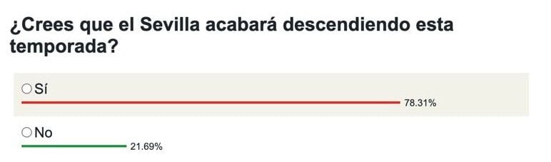 El Sevilla se ha metido de lleno en el lío del descenso tras su derrota ante el Real Oviedo y en el seno de la afición sevillista se ha instaurado la negatividad y el desasosiego como demuestran los datos de nuestra encuesta sobre las posibilidades de bajar del conjunto nervionense