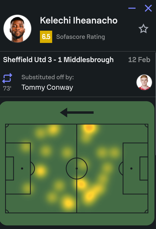 El artillero propiedad del Sevilla FC no realizó ningún tiro a puerta en Bramall Lane, donde Ben Brereton Díaz y Anel Ahmedhodzic amarraron los tres puntos para el Sheffield United en la reanudación. Por su parte, Iheanacho, con un coeficiente de goles esperados (xG o Expected Goals) de sólo 0,10, lanzó dos tiros desviados y le bloquearon otro. No intentó regates y tocó 24 veces el balón. Mejor, porque su porcentaje de acierto en el pase fue de sólo un 47%, con doce pérdidas de balón. Cayó una vez en fuera de juego y ganó un duelo aéreo de los cinco que intentó, más otro fallido por tierra. Intentó dos pases en largo que tampoco encontraron destinatario. Un día más en la oficina para un artillero que es carne de rescisión en verano.