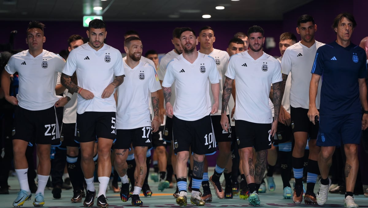Los componentes de la Albiceleste, en los prolegómenos de su primer partido en Qatar 2022.@Argentina