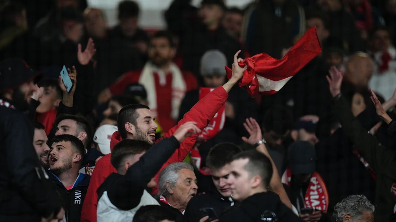 Hinchas nervionenses en Old Trafford.SFC