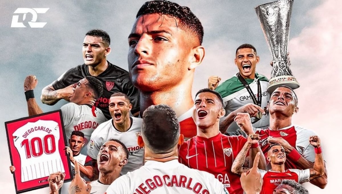 El montaje con el que Diego Carlos se despedía del Sevilla FC, un club muy especial para él.d.carlos03