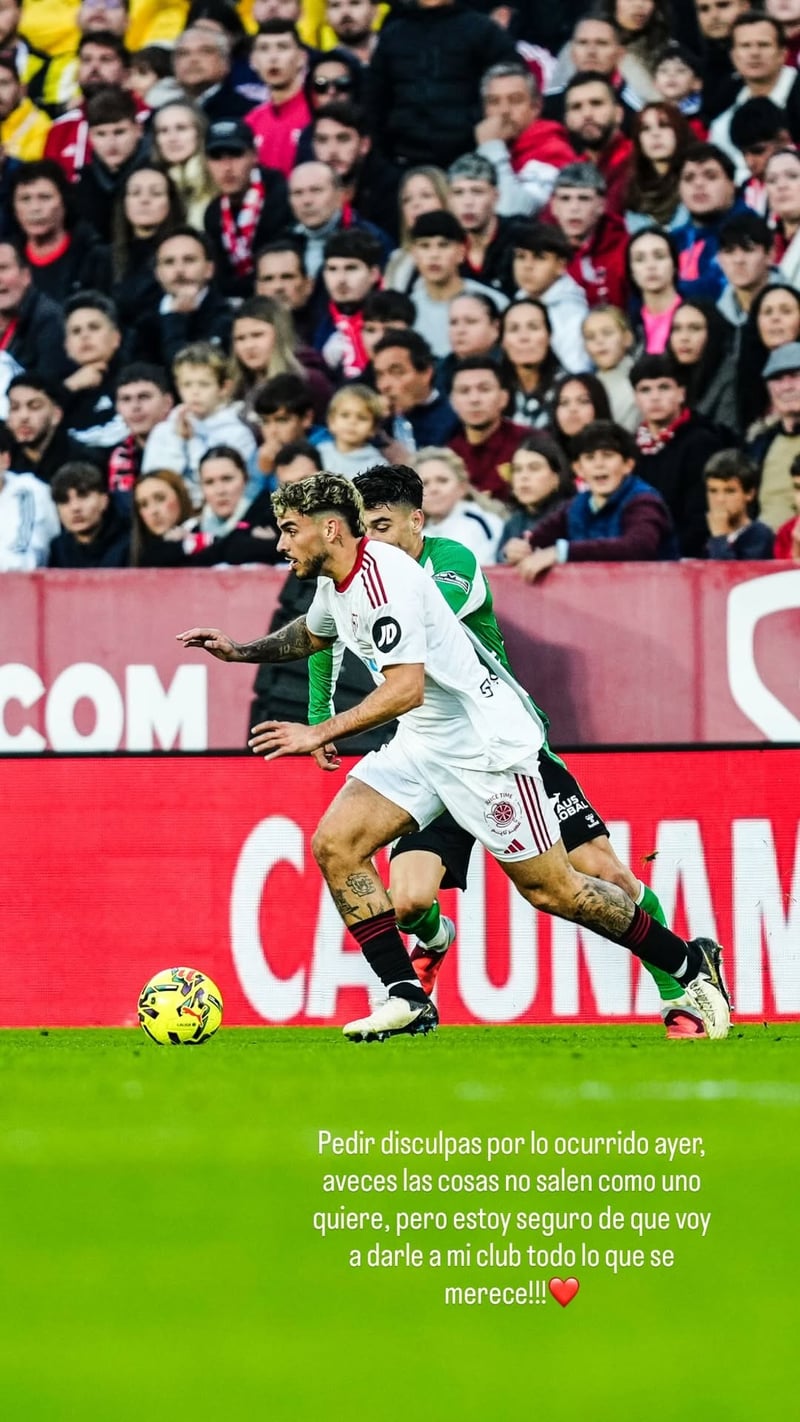 "(Quiero) pedir disculpas por lo ocurrido ayer. A veces las cosas no salen como uno quiere, pero estoy seguro de que voy a darle a mi club todo lo que se merece", escribía este lunes el zurdo en su perfil de Instagram, junto a una de las pocas imágenes que pudo captarse de él en juego, en concreto pugnando con Marc Roca por un balón. En los 23 minutos que estuvo sobre el césped, apenas dio una a derechas: 0/3 duelos ganados, dos faltas realizadas (una de ellas, la de la roja directa por la entrada a Valentín Gómez), cinco pérdidas de balón tras siete contactos con el mismo, sólo dos de cinco pases exitosos (y en campo propio) y ningún disparo, a puerta o desviado. Toca resetearse y volver más fuerte.