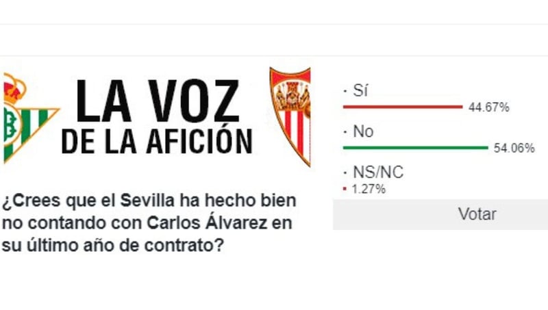 Una decisión que ha creado controversia, no en vano, Carlos Álvarez tiene muchos seguidores, que no entienden que se deje salir de esta forma a un jugador que fue el mayor asistente y más decisivo en los cinco grupos de Segunda RFEF la pasada campaña. Así lo confirman en la #EncuestaHelvetia, donde señalan que el Sevilla ha cometido un error dejando sin espacio al jugador de Sanlúcar La Mayor en su último año.
