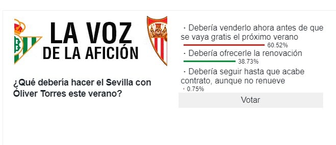 Y los resultados han dejado una división más que evidente ante su futuro, pues aunque el 60% de los votantes apostarían por buscarle una salida este verano al futbolista después de cuatro años en Nervión, casi un 40% apostaría por renovarle viendo que su rendimiento es bueno aunque no sea un titular indiscutible en el Sevilla Fútbol Club. Tan sólo un 0,75% le dejaría seguir en el club de Nervión aunque ello suponga que salga gratis el próximo verano.