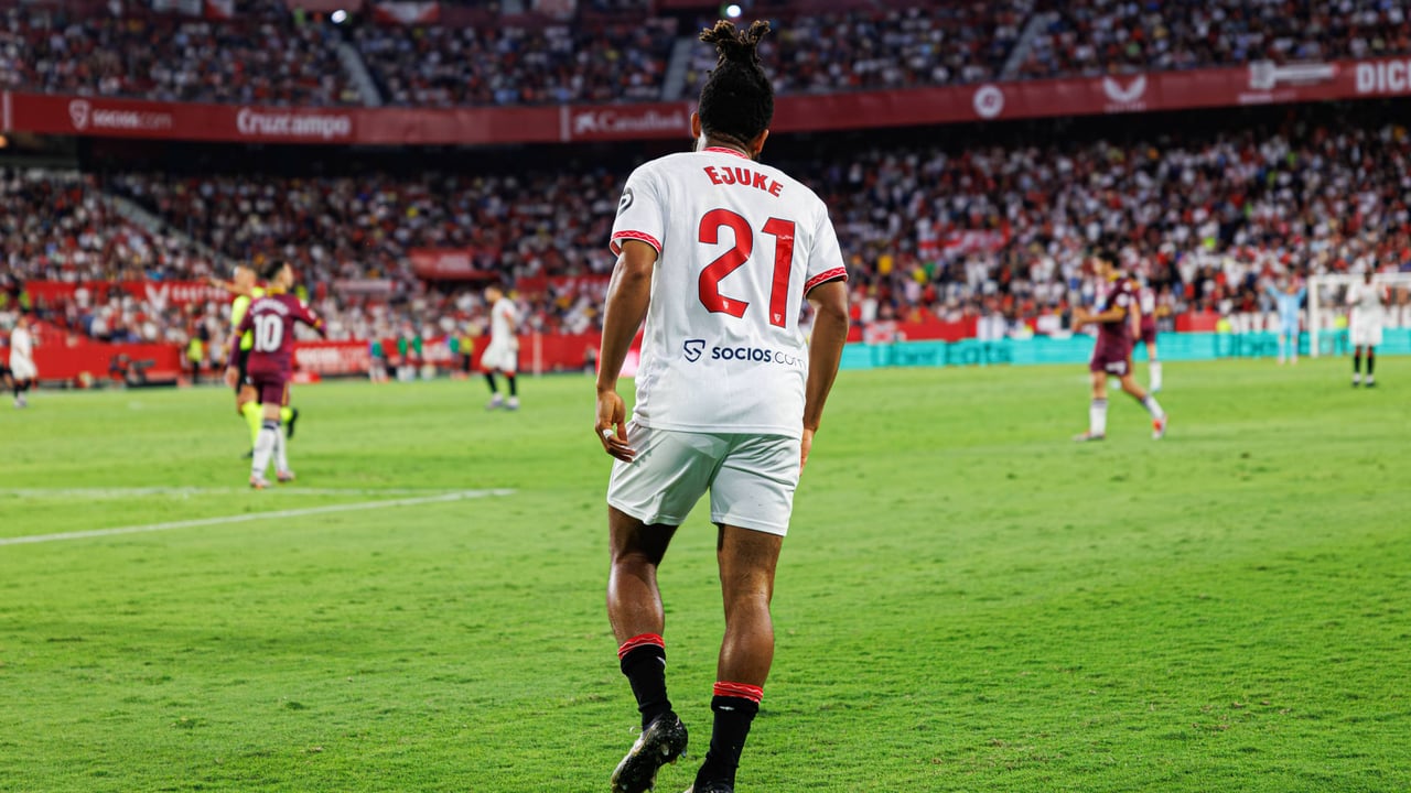 Con dos goles y una asistencias en 25 partidos, ni siquiera alcanzó los 1.000 minutos de juego en su primera temporada como blanquirrojo, en gran parte por una grave dolencia que sufrió en Montjuic ante el FC Barcelona y que le tuvo casi tres meses en el dique seco. Se rompió siendo titular en la izquierda, con Dodi Lukébakio en el costa opuesto, pero, a su regreso en enero de 2025, el fichaje de Rubén Vargas le condenó al ostracismo en la segunda vuelta, hasta el punto de Ejuke sólo fue titular en cuatro de las últimas 19 jornadas. Sustituido al descanso en el estreno de Caparrós, se quedó en el banquillo en tres de los siguientes seis partidos, sumando apenas 14 minutos en los otros tres.