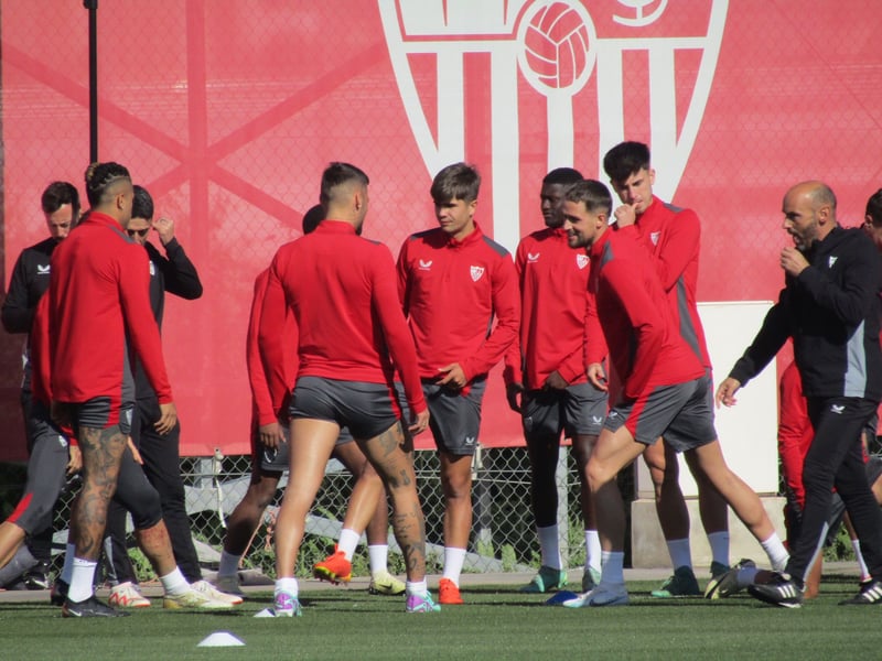 Tras el tradicional saludo del cuerpo técnico a la plantilla, seguido de la correspondiente carrera continua alrededor del campo como fase de calentamiento, llegaron los primeros ejercicios de activación habituales en cada entrenamiento del Sevilla. En este sentido, tras unos rondos con balón, los jugadores del primer equipo pasaron a realizar trabajos físicos. Llamó la atención la notable presencia canterana, con hasta siete representantes de las categorías inferiores.