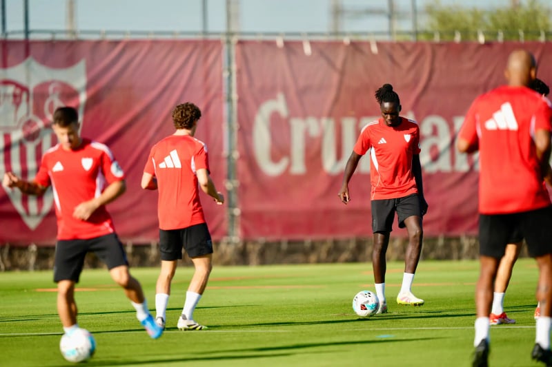 El técnico nervionense, Matías Almeyda, ha repetido alegrías en la segunda sesión de la semana, a sólo tres días de viajar a Vitoria para enfrentarse al Deportivo Alavés en la jornada 5 de LaLiga EA Sports