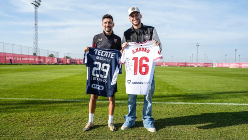 El ejemplo de Jesús Navas se está haciendo especialmente palpable en estos últimos días de su dilatada carrera y no quería perderse estos días de apoyo al 'Duende' un tipo siempre pasional como es Ocampos. El extremo argentino, que arrancó la temporada 24/25 como sevillista antes de ser traspasado al Rayados de Monterrey, está de vacaciones después de terminar el Apertura 2024 de la Liga MX, torneo que su equipo -en el que también están Tecatito Corona y Óliver Torres- acabó perdiendo en la final ante el Club América de México (2-1 y 1-1). El de Quilmes, que no pudo jugar por lesión, ha obsequiado al palaciego con una camiseta con el '29' que luce en el cuadro azteca y a cambio se ha llevado firmada otra del mítico '16', con el que formó un tándem espectacular por la banda derecha.
