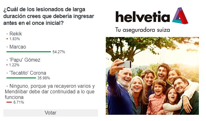 Tras el brasileño, Corona, con el 36% de los votos. Una alternativa para la banda derecha que daría mucho juego a Mendilibar, aunque el mexicano también puede jugar como enganche. Muy por detrás quedan Rekik, con el casi 2% de los votos y el Papu Gómez, con el 1%. Sin embargo, hasta un 6 por ciento de los participantes apostaría por no forzar la vuelta de ninguno de los recién recuperados, vista la mala fortuna del equipo esta campaña con la lesiones, y seguir confiando en los que están sanos.