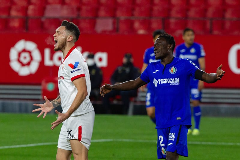 Aunque todavía le ha ido peor contra los tres transatlánticos (doce derrotas en 13 partidos contra el Real Madrid y en 15 contra el Atlético de Madrid, más once en 17 frente al Barça), a Dakonam Djené se le atraganta históricamente el Sevilla FC. Han sido cinco triunfos, dos empates y diez derrotas en los 17 cruces contra los nervionenses, aunque el factor desequilibrante han sido las tres tarjetas rojas, merecidísimas por cierto, que ha visto, tres veces más que contra ningún otro rival. En concreto, el 21 de abril de 2019 por un entradón a Jesús Navas (aunque ya iba 3-0 y era el minuto 74, por lo que no afectó al marcador) y el 6 de febrero de 2021 (en el 54, con 0-0, allanado el 3-0 final para los blanquirrojos) antes de este 22 de febrero de 2026.