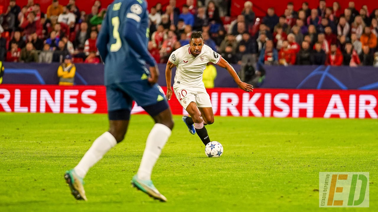 El brasileño, durante su último partido como nervionense, en Champions ante el PSV.Lince