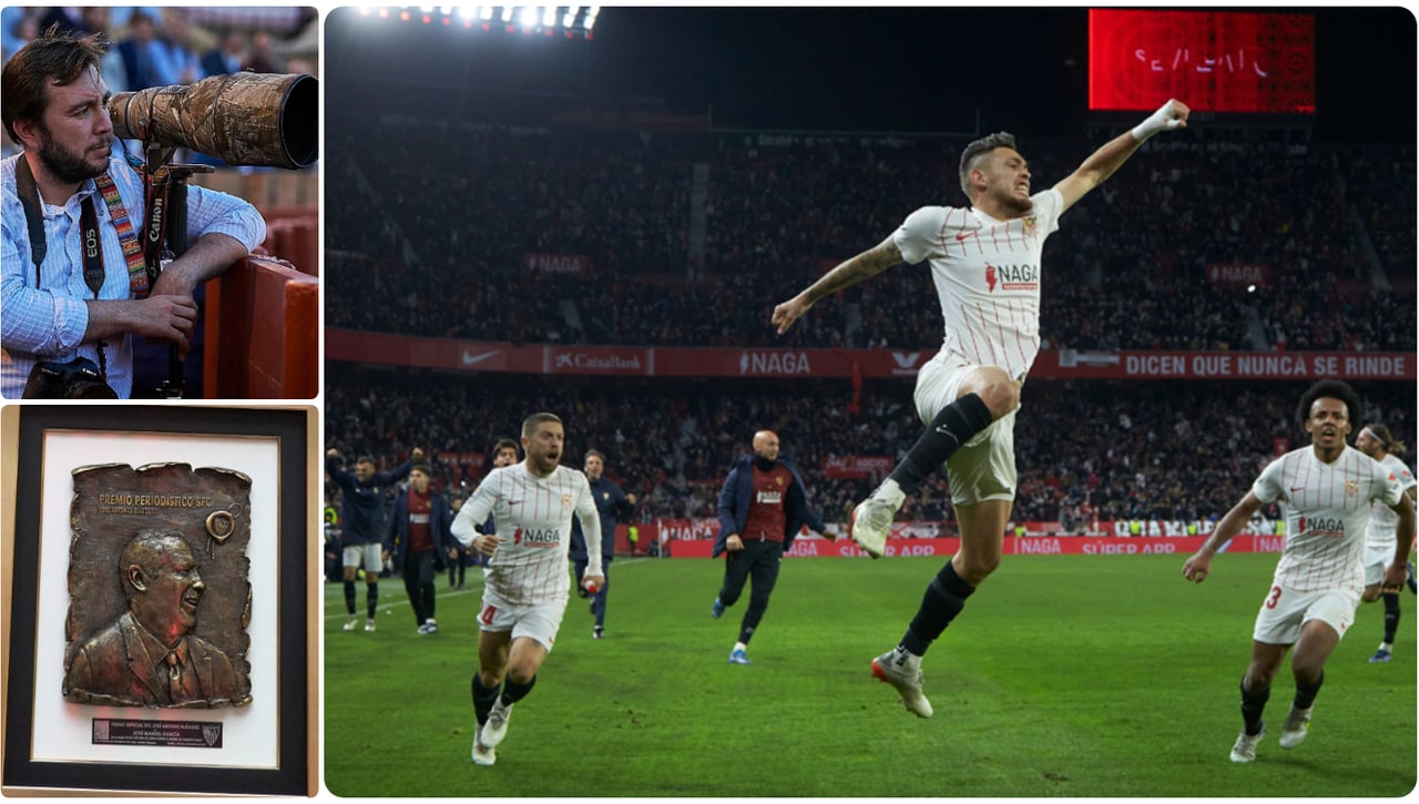 "La imagen tiene además una simbología añadida, pues este fue uno de los primeros partidos en el Ramón Sánchez-Pizjuán en el que se pudo habilitar el aforo completo, un año y nueve meses después de que todo cambiase con la pandemia del covid-19. Se puede decir, sin ningún género de dudas, que aquella noche el estadio recuperaba por fin a su indispensable jugador número 12", explica el Sevilla FC en la nota en la que anuncia a Joaquín Corchero como ganador del décimo premio Ruesga Bono.