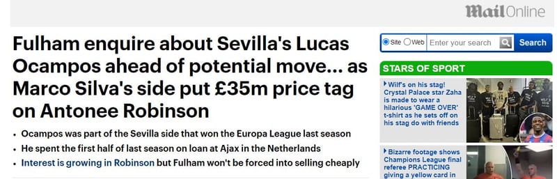 En este incierto contexto ha irrumpido el Fulham FC, quien según el Daily Mail tiene el nombre de Ocampos entre las primeras opciones para suplir una más que probable venta de Antonee Robinson, tasado en 40 millones de euros, y según el citado medio está preparando ya una oferta formal que a priori presentará al Sevilla FC en los próximos días y que, como es lógico, incluiría una atractiva mejora salarial para el argentino.