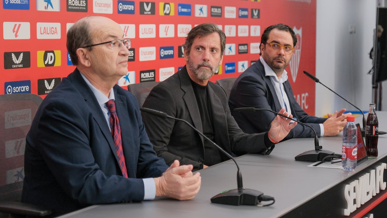 "La afición, ahora mismo, no quiere a nadie. El primer sevillista cabreado soy yo. Si estuviésemos ganando partidos, todos pensaríamos de otra forma. El mensaje sólo puede ser de unión y seguir animando. Cuando las cosas van rematadamente mal, hay que tomar decisiones. Igual que el año pasado acertamos, esperamos hacerlo en éste para salir de un sitio que no merecemos". Fue prácticamente la única intervención de José Castro, presidente del Sevilla FC, durante la presentación de Quique Sánchez Flores, excepción hecha de una mención a la búsqueda de un nuevo patrocinador cuando se alcanza el ecuador de la temporada 23/24 y van ya tres técnicos en el primero equipo y dos en el filial: "Seguimos trabajando. No es fácil, pero confiamos en tenerlo pronto". La voz cantante del acto la llevó, lógicamente, el nuevo entrenador, con Víctor Orta asumiendo la responsabilidad del "fracaso" con Diego Alonso y hablando abiertamente del mercado invernal.