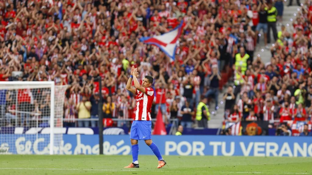 Luis Suárez aplaude a la afición del Atlético de MadridUES