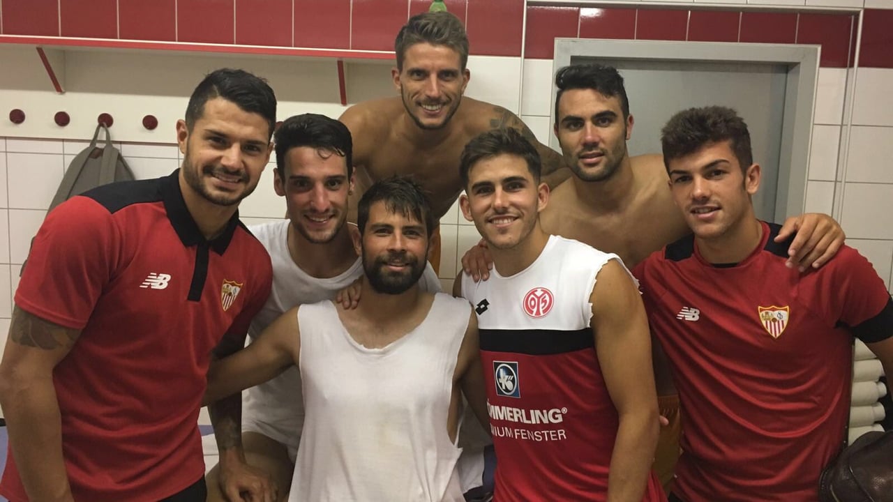 Jairo Samperio posa con varios ex compañeros del Sevilla FC durante su etapa en el Mainz 05.@JairoTheki