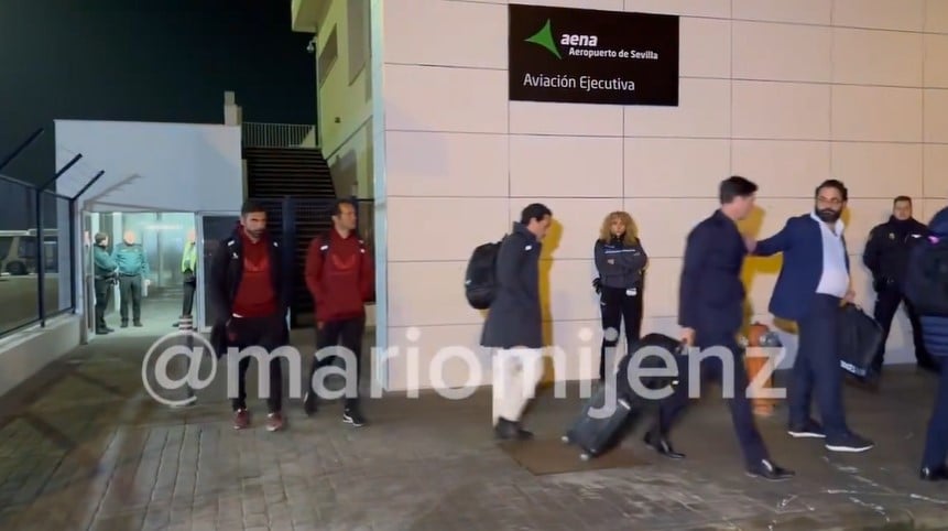 La plantilla nervionense aterrizó en el aeropuerto de San Pablo pasadas las dos de la mañana y allí se dieron cita algunos medios de comunicación para captar las imágenes de la expedición sevillista, donde las caras eran muy largas. Entre los jugadores aparecía caminando el lesionado Dodi Lukebakio, aunque con un aparatoso férula en su pierna izquierda para tener lo más inmovilizada posible su rodilla.