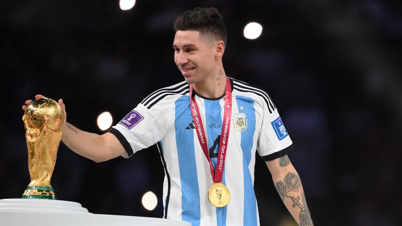 Gonzalo Montiel, junto a la Copa del MundoTwitter / @CONMEBOL