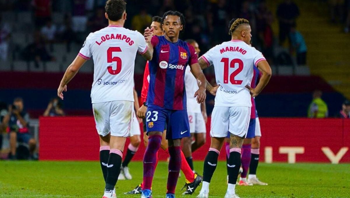 Ocampos, Koundé y Mariano Díaz, en el Barça-Sevilla.@laliga